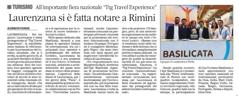Laurenzana si è fatta notare a Rimini: all'importante "fiera" per la promozione del turismo internazionale "Ttg Travel Experience"